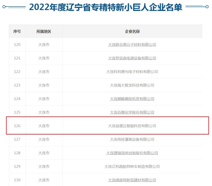 近日,大連益盛達智能科技有限公司憑借出色的綜合實力,榮獲2022年遼寧省專精特新“小巨人”企業(yè)稱號。